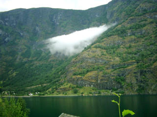 Flamsbana treni. Flam’da fiyorttan yamaca tırmanmaya çalışan bir bulutçuk.