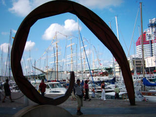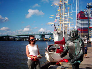bir de büyük yelkenli gemi limana yanaşmıştı. Liman Göte nehri üzerinde.