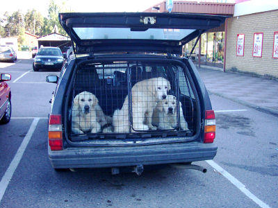 Bir marketin önünde araba içinde bekleşen köpekler.