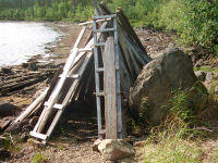 şeklinde yerleştirilmiş bir tahta yığını da görüyoruz ama buna bir