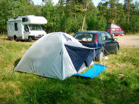 Çadırımızı akarsuyun hemen kenarına kurduk. Burada iki şişman bayan nehrin buz gibi sularına girip yüzdüler. Çadırı kurduğumuz yerden 2 ayrı kayakla atlama pisti görülüyor. Rovaniemi tam bir kış sporları cenneti. Kampta çok güzel, ahşaptan 3 kişilik Bungalov tipi evler var. Evlerin ısıtmaları da olduğundan kamp kışın da aktif olarak kullanılıyormuş. 3 kişilik Bungalov fiyatı da 35EUR. Buraya kadar 4 günde 1285km yol kat ettik. Ortalama günlük 320km yol almışız. Göl kenarındaki kampta akşam çevre yürüyüşü yaptık. Sonra yemek yiyip yattık. Yeni aldığımız matlar sayesinde daha rahat ettik.