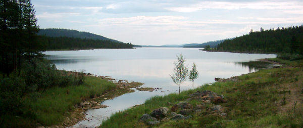 Saat 23:30 civarında, Inari gölünün yanında, LA3 Ukonjarvi/Ivalo kampinge